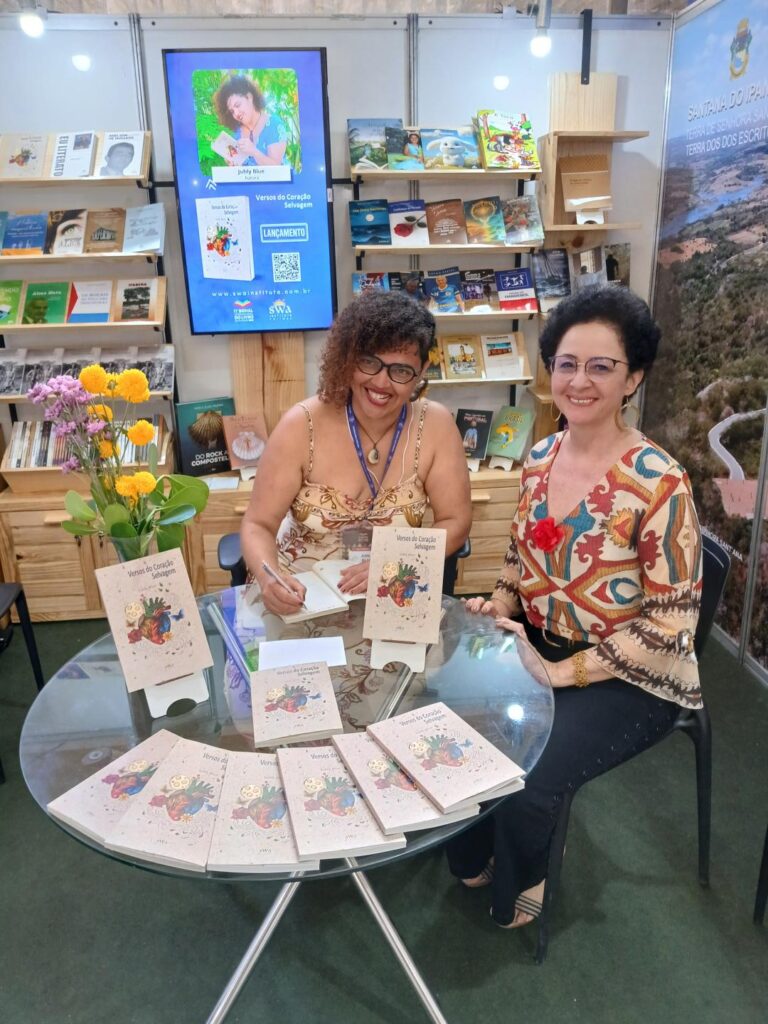 Durante o lançamento a escritora Jhuly Blue interagiu com os visitantes, leu alguns dos seus poemas e recebeu a visita de amigos e familiares, como a santanense Sânia Pereira, irmã do professor Alberto Pereira Santos, madrinha e tia da autora.